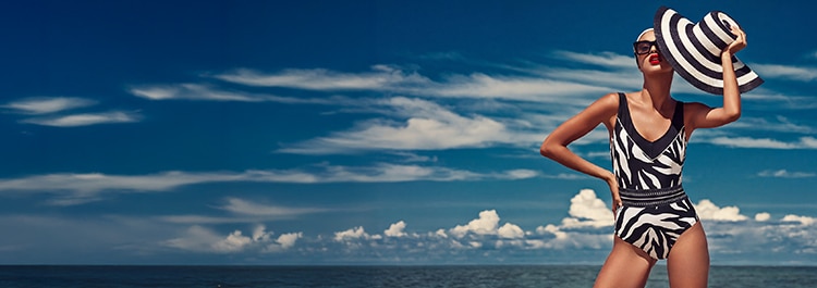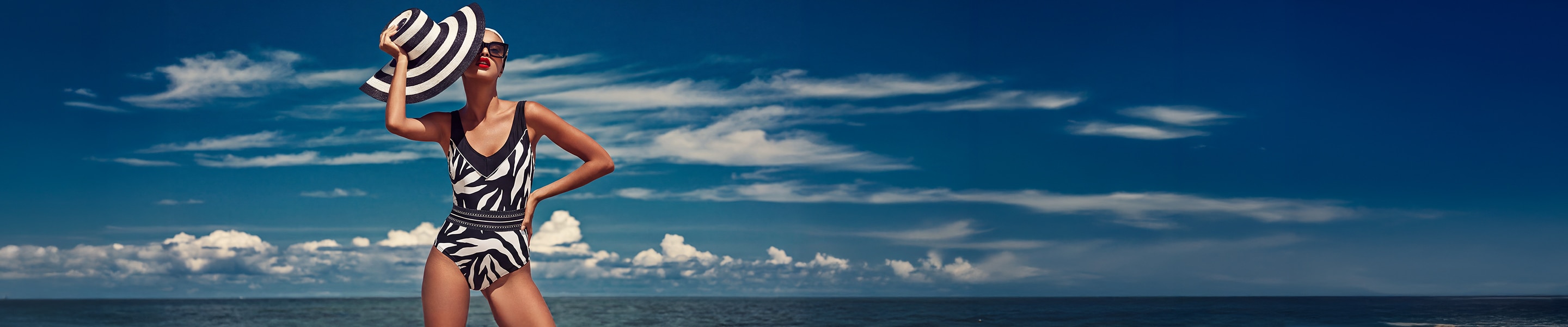 Machen Lust auf Urlaub: Einteiler mit auffälligen Prints, Bikinis, Tankinis & Co.