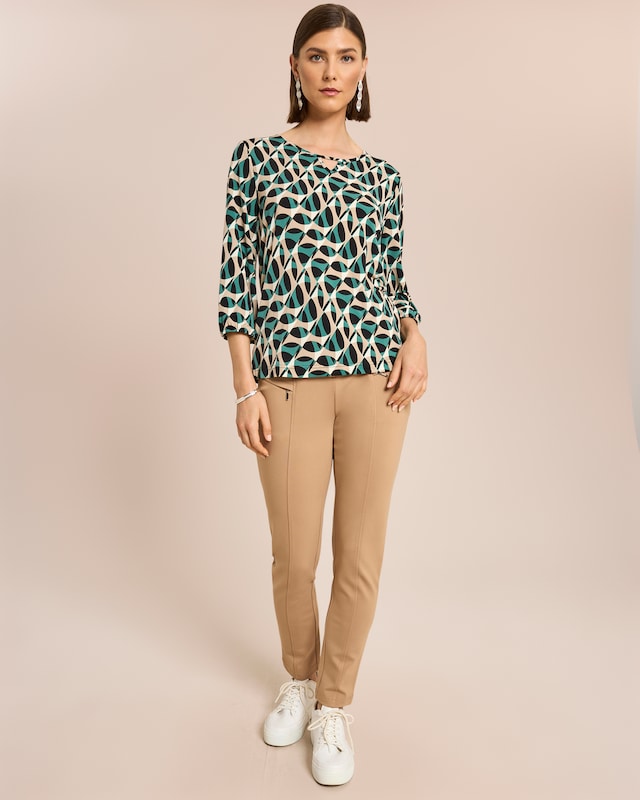 Lassen Sie sich von der Ponte-Hose mit raffinierter Naht verzaubern. Die geschwungene Linienführung am Bein schafft eine feminine Silhouette, während der gerade Schnitt Ihre Beine optisch streckt. Praktische Reißverschlusstaschen bieten sicheren Stauraum für Ihre Essentials. Das Ponte-di-Roma-Gewebe umschmeichelt Ihre Figur und sorgt für ganztägigen Tragekomfort. Ob im Büro oder in der Freizeit - diese Hose ist Ihr treuer Begleiter für jeden Anlass. Genießen Sie die Leichtigkeit des Seins in einer Hose, die Stil und Funktionalität perfekt vereint.