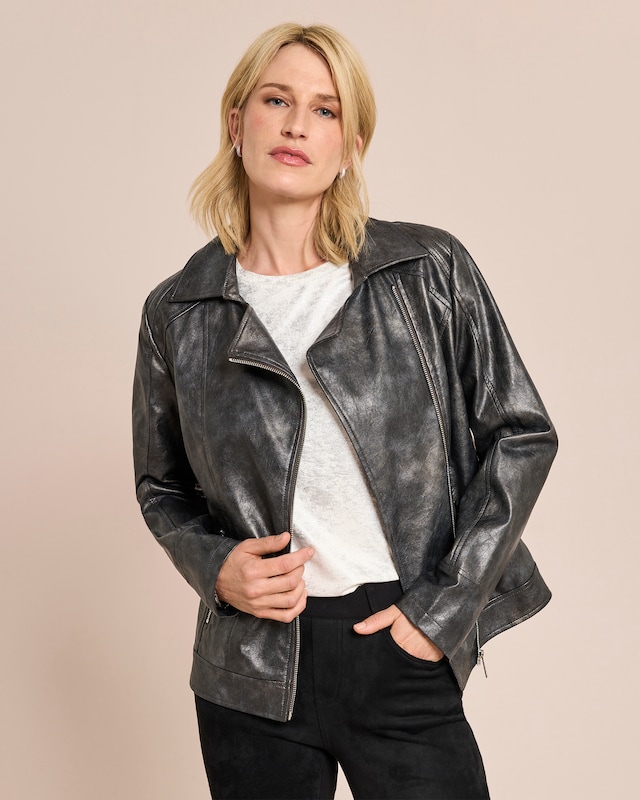 Stilvolle Bikerjacke mit Metallic-Effekt