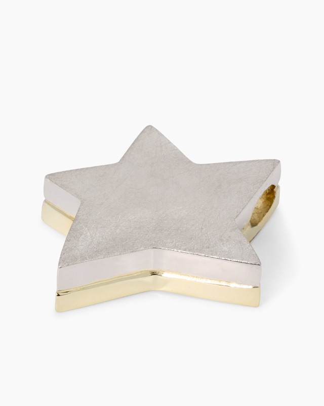 Wir holen für Sie die Sterne vom Himmel! Der Schmuckanhänger ist zum Wenden und begeistert mit einer witzigen Sternform. Eine Seite ist aus Weißgold 585, die andere aus Gelbgold 585. Mit diesem schicken Wendeanhänger erhalten Sie zwei Schmuckstücke in einem. Die Gelbgoldseite ist hochglanzpoliert und leuchtet in einem sonnigen Goldton. Die Weißgoldseite ist mattiert und fasziniert mit kühl-elegantem Charme.