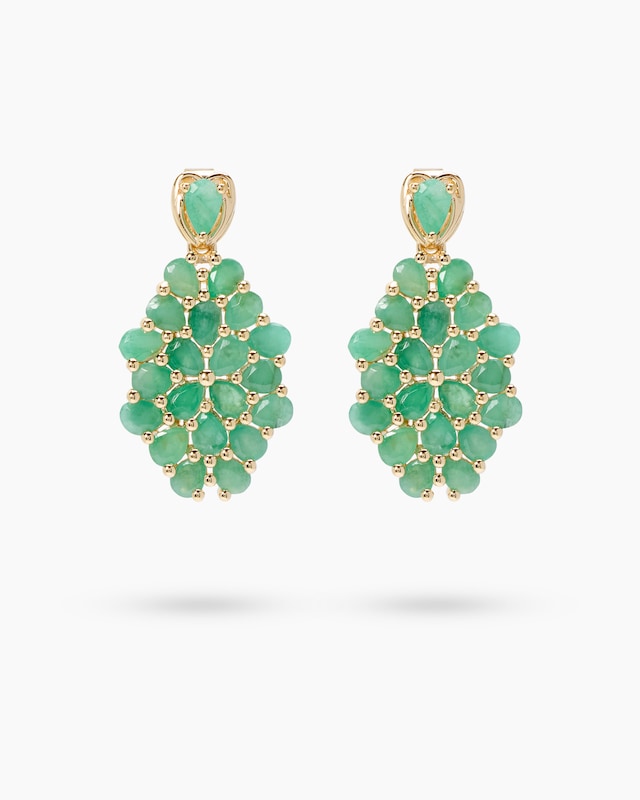 Verleihen Sie Ihrem Look zeitlose Eleganz mit unseren bildschönen Smaragd-Ohrsteckern: Aus gelbvergoldetem 925er Sterlingsilber gefertigt und liebevoll  hochglanzpoliert, begeistern sie mit einer edlen, ovalen Form. Dicht besetzt mit 42 tropfenförmigen, facettierten Sambia Smaragden in leuchtendem Grün strahlen sie puren Glamour aus. Alle Edelsteine, sicher in Krappenfassungen gehalten, funkeln mit einem Gesamtgewicht von ca. 5,67 ct. Perfekt für besondere Anlässe oder um Ihren Alltag mit luxuriösem Charme zu bereichern. Diese Ohrstecker unterstreichen die Eleganz Ihrer Stylings auf raffinierte Art und Weise und sorgen für unübersehbare Eye-Catcher-Effekte.