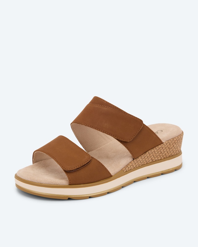 Lassen Sie den Sommer an Ihre Füße! Diese Pantolette mit Keilabsatz verzaubert mit ihrem farbenfrohen Blumenmuster auf hochwertigem Leder. Der leichte Keil in Korkoptik und die Memory Foam Sohle sorgen für müheloses Gehen. Dank der zwei verstellbaren Klettverschlüsse passen Sie perfekt. Die Weite G bietet angenehmen Halt, während die PU-Sohle Ihnen sicheren Tritt verleiht. Ein Hauch von Leichtigkeit für Ihren Alltag - diese Pantolette macht jedes Outfit zum Hingucker.