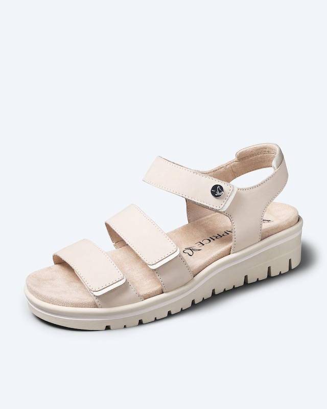 Ihre Füße verdienen an warmen Tagen genau diese Aufmerksamkeit. Diese Sandale vereint durchdachte Funktionalität mit zurückhaltendem Design. Drei verstellbare Klettverschlüsse ermöglichen Ihnen eine perfekte Passform, die sich Ihren Bedürfnissen anpasst – ganz ohne Schnallen oder Riemchen. Die Laufsohle mit ihrem markanten Profil gibt Ihnen sicheren Halt, während das weiche Fersenpolster jeden Schritt angenehm abfedert. Besonders praktisch: Die herausnehmbare Innensohle lässt sich bei Bedarf waschen und sorgt so für dauerhafte Frische. Die H-Weite bietet Ihren Füßen großzügigen Raum, ohne auf eine feminine Linienführung zu verzichten. Ob beim Stadtbummel, im Garten oder auf Reisen – dieser Begleiter fügt sich mühelos in Ihren Tag ein. Zu Hosen jeder Länge macht diese Sandale eine gute Figur und begleitet Sie verlässlich durch die Saison.
