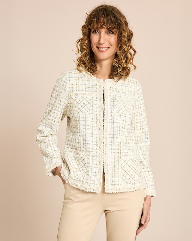 Eleganter Bouclé-Blazer mit Perlenverzierung