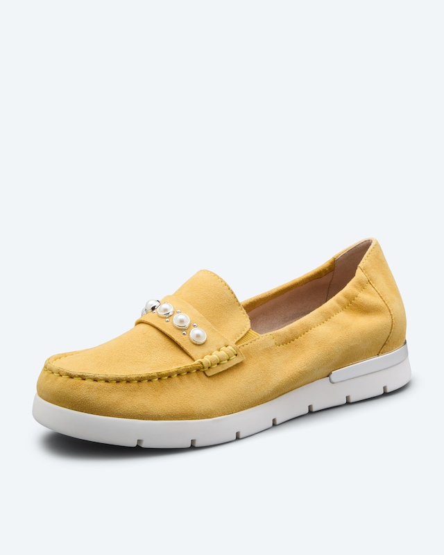 Dieser Schuh verwandelt jeden Schritt in ein Erlebnis von Leichtigkeit und Stil. Der Caprice Mokassin überzeugt durch seine klassische Schlupfform, die Ihnen das mühelose Hineinschlüpfen ermöglicht. Weiches Veloursleder schmiegt sich sanft an Ihren Fuß, während die charakteristische Handnaht die traditionelle Handwerkskunst unterstreicht. Perlen zieren den Schaftbereich und setzen dezente Akzente. Die flexible Laufsohle begleitet Sie federnd durch den Tag, ob beim Stadtbummel oder beim Treffen mit Freundinnen. Dank der herausnehmbaren Innensohle passen Sie den Schuh Ihren persönlichen Bedürfnissen an. Ein verlässlicher Begleiter, der sich mühelos zu Hosen und Röcken kombinieren lässt und Ihnen stets ein sicheres Auftreten schenkt.