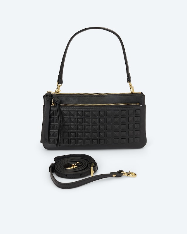 Ihre neue Lieblingstasche ist da! Diese Umhängetasche aus feinstem Nappaleder vereint Funktionalität mit edlem Design. Dank der drei Reißverschlussfächer und sechs Kartenfächer haben Sie alles Wichtige stets griffbereit. Die abnehmbaren Riemen ermöglichen flexible Tragevarianten - von der eleganten Clutch bis zur lässigen Schultertasche. Ein Hingucker sind die dekorativen Nieten, die dem Accessoire einen modischen Touch verleihen. Diese Tasche passt sich mühelos Ihrem Lifestyle an und begleitet Sie stilvoll durch den Tag.