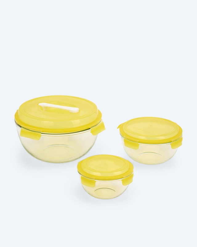 Zum Aufbewahren & Servieren: Drei Glasschüsseln mit Deckel