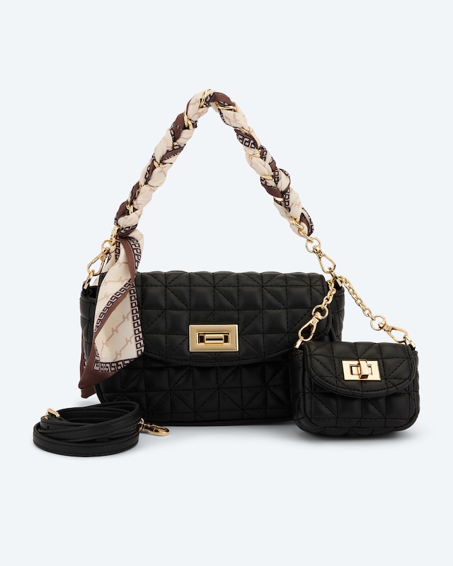 Diese Minitasche verleiht Ihrem Outfit den gewissen Etwas. Das gesteppte Design und der edle Schlossverschluss setzen modische Akzente. Dank des abnehmbaren Umhängeriemens und des Tuch-Henkels lässt sie sich vielseitig tragen. Die inklusive Mini-Tasche bietet zusätzlichen Stauraum für Kleinigkeiten. Mit einem Innenfach mit Reißverschluss bleiben Ihre Wertsachen sicher verstaut. Diese Tasche ist der perfekte Begleiter für jeden Anlass - vom Einkaufsbummel bis zum Abendessen.