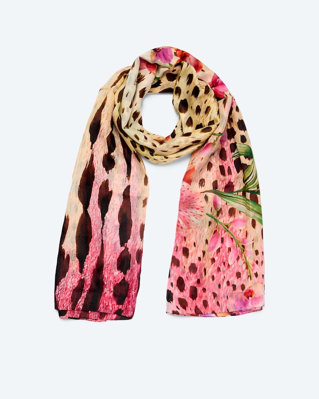 Seidenschal mit Blumen-Leomuster