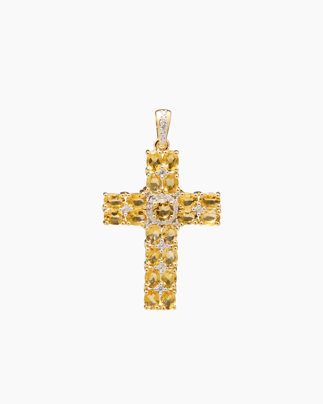 Strahlender Kreuzanhänger mit Citrin und Zirkon