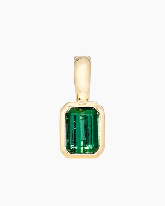 Lassen Sie sich von der faszinierenden Schönheit dieses Golconda Turmalin-Anhängers verzaubern. Der exquisite Edelstein, bekannt für seine außergewöhnliche Qualität, wird in einer eleganten Zargenfassung präsentiert und verleiht dem Schmuckstück eine unvergleichliche Ausstrahlung. Der facettierte, achteckige Turmalin in einem satten Grün fängt das Licht ein und reflektiert es in einem atemberaubenden Spiel. Mit einem Gewicht von ca. 0,90 ct ist er ein wahrer Blickfang. Der Anhänger aus hochglanzpoliertem Gold 375 ist wahlweise in Gelb- oder Weißgold erhältlich und unterstreicht die Brillanz des Edelsteins perfekt. Mit einer Größe von ca. 16,9 x 7,4 mm und einer Öse von ca. 3,4 x 3 mm ist er ein elegantes Statement-Piece, das sowohl zu festlichen Anlässen als auch im Alltag getragen werden kann. Der praktische Clipverschluss ermöglicht ein einfaches Anbringen an Ihrer Lieblingskette. Dieser Anhänger aus der Sogni d'oro Kollektion ist nicht nur ein Schmuckstück, sondern ein Kunstwerk, das die Schönheit der Natur einfängt. Er ist das perfekte Geschenk für alle, die das Besondere lieben und Wert auf höchste Qualität legen.