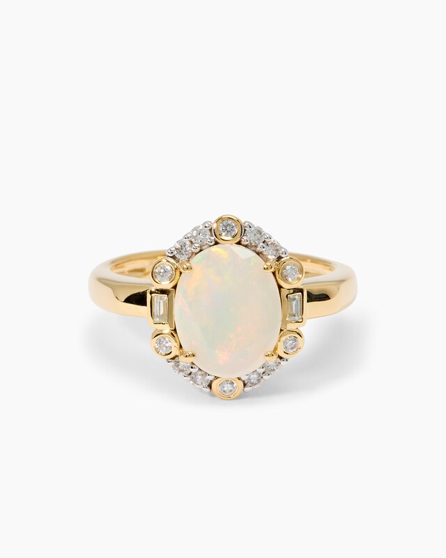 Lassen Sie sich von der magischen Ausstrahlung dieses exquisiten Rings verzaubern. Im Mittelpunkt steht ein faszinierender äthiopischer Opal mit einem Gewicht von ca. 1,50 ct, der in einer eleganten Krappenfassung thront. Seine schimmernde Oberfläche wird von einem Kranz aus funkelnden weißen Zirkonen umrahmt, die dem Ring eine zusätzliche Brillanz verleihen. Das gelbvergoldete Sterlingsilber 925 bildet einen wunderbaren Kontrast zu den Edelsteinen und unterstreicht deren natürliche Schönheit. Die hochglanzpolierte Oberfläche des Rings sorgt für einen edlen Glanz, während die teilweise Rhodinierung besondere Akzente setzt. Mit seiner Kombination aus dem ovalen Opal und den facettierten Zirkonen in verschiedenen Formen - darunter Baguette und runde Schliffe - ist dieser Ring ein wahres Schmuckstück für besondere Anlässe. Die filigrane Handwerkskunst zeigt sich in jedem Detail, von der präzisen Steinsetzung bis zur harmonischen Gesamtkomposition. Dieser Ring von Harry Ivens ist nicht nur ein Accessoire, sondern ein Kunstwerk, das die Blicke auf sich zieht und Ihre Persönlichkeit stilvoll unterstreicht.