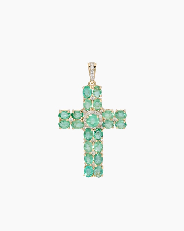 Exquisiter Kreuz-Anhänger mit Sambia-Smaragden
